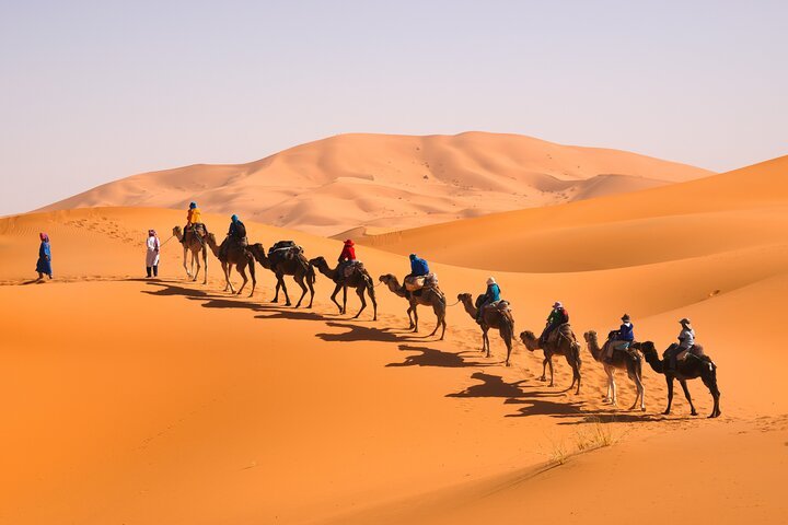 • Sahara Desert: Erg Chebbi dunes, camel trekking, desert bivouac