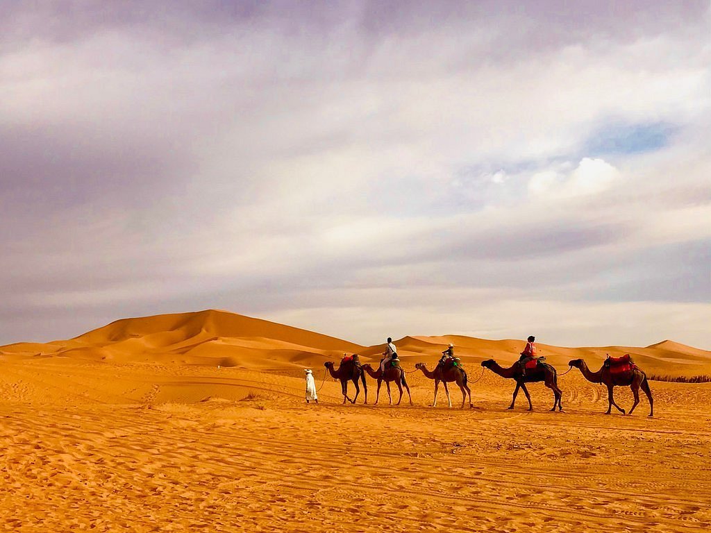 - Desert Adventure: Camel treks and bivouac nights in Erg Lihoudi.